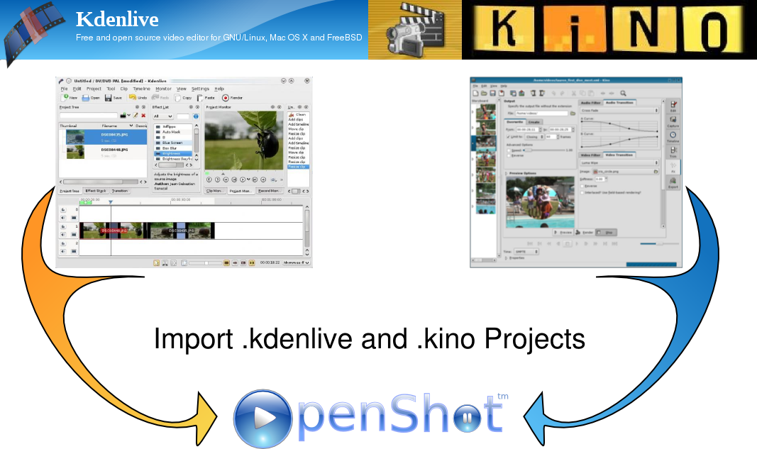 I'm sure many of you have .kdenlive and .kino project files lying around your hard drive. How would you like the ability to import these projects into OpenShot (version 1.1 of course)?