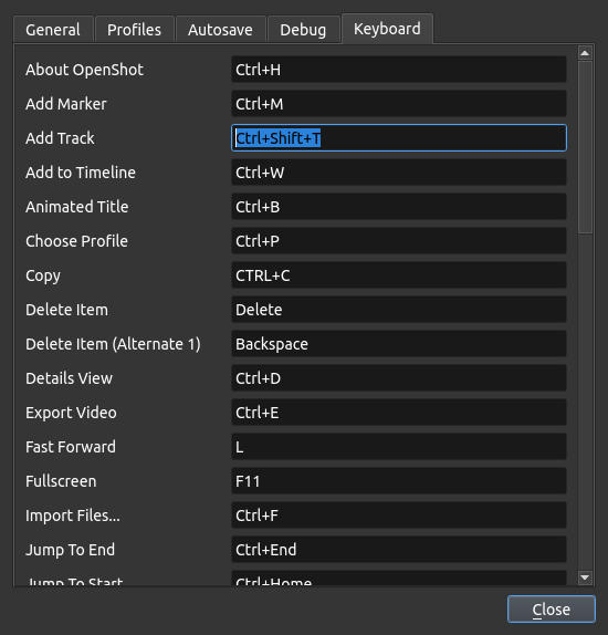 Users now have the ability to see all keyboard shortcuts used by OpenShot, and even customize them. This also fixes some issues with Ubuntu and a long-standing bug preventing certain shortcuts from working with their unified menu bar. In addition, we’ve added new shortcuts for some common things like, Select All/None, Copy/Paste, etc...