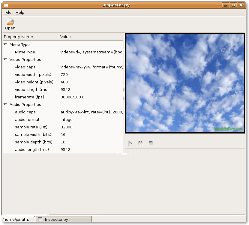 I have completed my first real Python program, which is a video / audio file inspector (and player). Simply download the source code, and run the "Inspector.py" script to start the program.